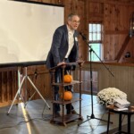 Were you there for the recent Inform and Inspire event? If you missed it, let me tell you it was the best one yet. Silo Hill was all decked out with gigantic mums, pumpkins, fall floral arrangements, and elegant table displays. As we approached, the gorgeous sound of Jazz met the guests. The cheer of Steve Scheinberg playing solo sax made us want to dance. Hardworking Sharon and Kris had everything planned to a T. Our amazing cooks pulled out their best hors d’oeuvre recipes. Our favorite husband, Ray, was king of the beverage table in the silo, while Lance held court over the wine pull. Even the wine bottles were decked out in darling tote bags and ribbons for future reuse thanks to Lisa. Steph looked radiant when she welcomed the guests and introduced Ebb and Flow who now number 12 ladies. Their harmony and blend were recognized as pure perfection. If that wasn’t enough our talented Roy pulled out a Mendelssohn, “Song Without Words” that was very appropriate. Our leader Marty introduced our commissioned piece by the amazing Z. Randall Stroope, followed by the video about Helen May Martin which made us cry to think we didn’t know of her handicaps. And just when our emotions were about to get the best of us, Ryan and Louis pulled us back to smiles with their gorgeous duets. Then it was time for our speaker Dr. Paul Rardin. He took the stage with only short notes, but soon was totally off the cuff with great praise for the gift of music and its gift to each of us. He admitted that with all his achievements and accolades, he has never started his own choir. He gave Marty great compliments for what she has accomplished and challenged those gathered to help make more happen. He said that the future could mean travel to musical destinations or more opportunities through more staff. The weather could not have been better with warm clear skies. As we left, we were greeted with a jar of homemade apple butter with the cutest label reading: “The DCC Apple-Lauds Your Generosity.” It was a perfect evening….